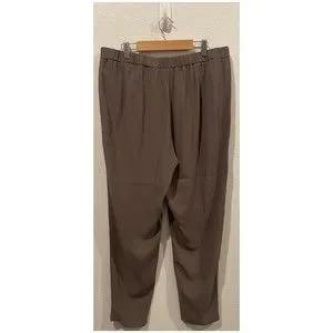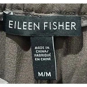 EILEEN FISHER Silk Georgette Crepe Slouchy Brown Pants. Size M