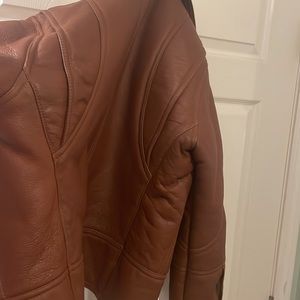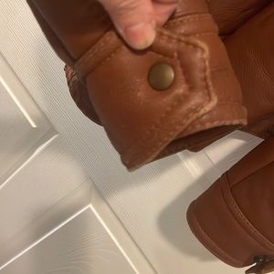Mens faux or leather fleece lined jacket brown cognac size 40 great condition lightly used heavy weight extra shipping applies