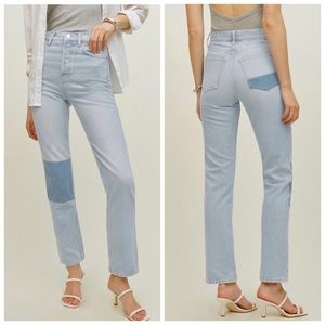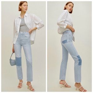 Reformation Cynthia Patch High Rise Straight Jeans In Tahoe NWT