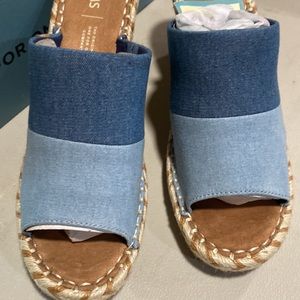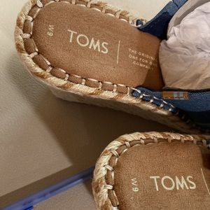 Brand new Tom’s wedges in denim with nice braided wedge in size 9.