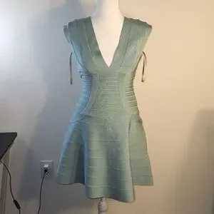HERVE LEGER "Noma" A-line dress in cascade blue. NWT size medium