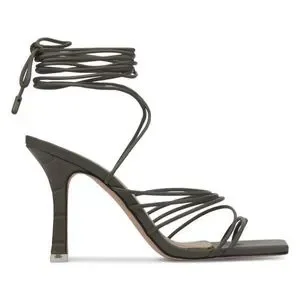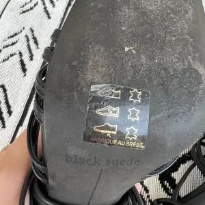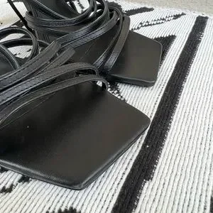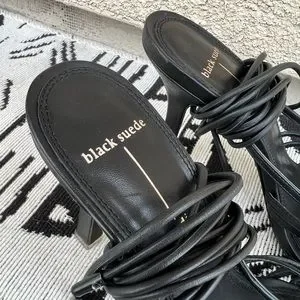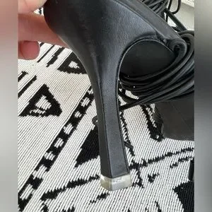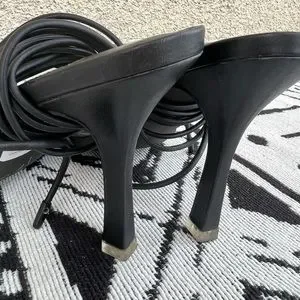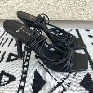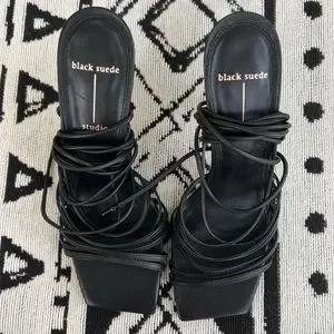 Black Suede Studio Black lace up square toe Strappy Sandal heels Size 37.5 (7.5)