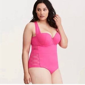 Torrid hot pink lattice sides one piece swimsuit, size 2X in clean, excellent pre-owned condition!