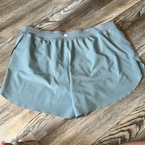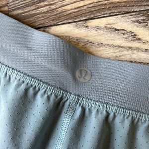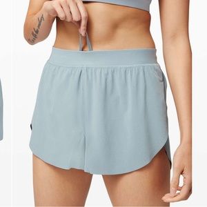 Practically new Lululemon "find your pace short 3" lined" in size: 12 color: blue cast There are only small marks on the bottom of the shorts due to the raw hem, other than that in excellent condition. These shorts and this color is no longer sold at Lulu!