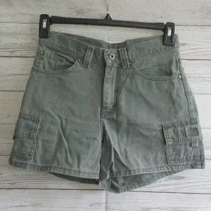 Lee DUNGREES olive green denim cargo shorts in Excellent Condition! - size 5 - Approx. measurements: (taken with item laying flat and un-stretched) waist 14.5" - rise 10.5" - hips 19.5" - inseam 4" - There are no rips, stains or defects of any kind!