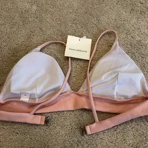 NWT ZAFUL BLUSH PINK TRIANGLE RIBBED BIKINI SWIMSUIT TOP SIZE MEDIUM
