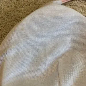Has small stain on the inside, left cup area (see picture) may remove when washed.