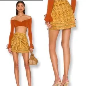 NWOT Free People REVOLVE Imogen Sarong Mini Skirt in Turmeric Made in India