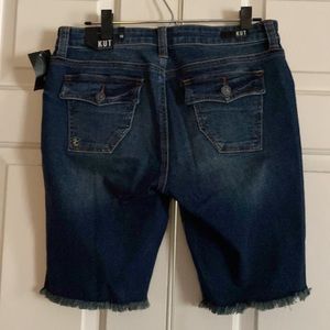 NWT Kut from the Kloth size 10 Bermuda denim shorts. 98% cotton and 2% spandex. Has a fringe hem that will look great down or cuffed. Smoke free home.