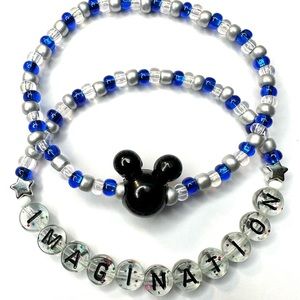 Set of two beaded stretch bracelets. Average female adult size 6.5-7 inches in length. Imagination. Do not get wet! Handle with care.