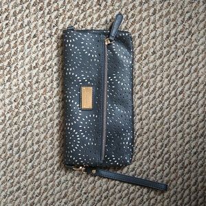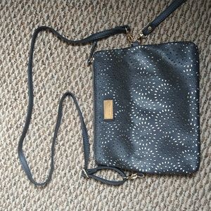 Nine West magnetic folding crossbody with deep zippered compartment. Comes with wristlet and detachable purse strap inside bag. Like new.