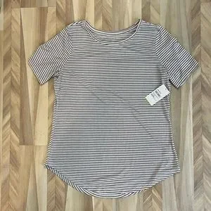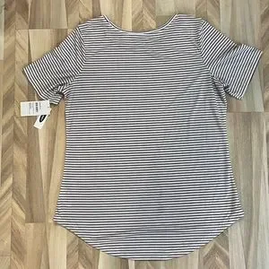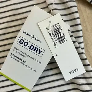 New with tags- white and gray striped t-shirt, active breathable lightweight fabric. Old Navy, Go Dry, size M