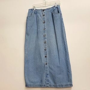 Vintage Bill Blass High Waisted Denim Long Maxi Skirt, sz 10 Med 100% Cotton