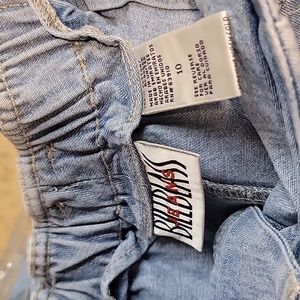 Late 80s or early 90s Bill Blass Jeans long denim skirt with belt loops, front pockets, riveted buttons, elasticized center back, 100% cotton. In great condition though there may be staining where I'm pointing on the front of the skirt (or it may be how it was stonewashed - I have not tried to treat it).