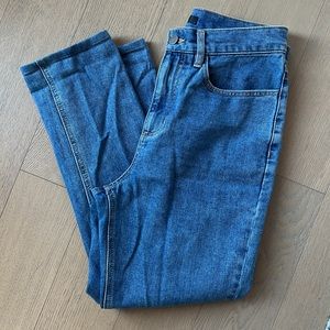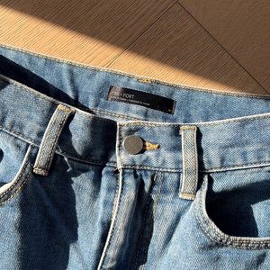 Slim fit. High-rise waist. 5-pocket design. Mid-weight, non-stretch denim. 29.5" inseam.