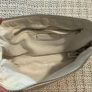 Forever 21 small purse It is in good condition and the zipper works perfectly. Please note there is slight discoloration on the one side but it is not noticeable.