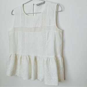 Zara Lace Crew Neck Tank Top Blouse Crochet Boho sleeveless Eyelet