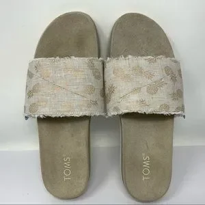 Toms Pineapple Slides. Size 10. Tan And Gold.