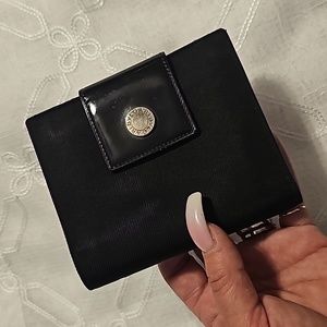 Great Pre-Loved BVLGARI Black Canvas & Leather Wallet. Both Snaps Work Great. 6 Card Slots, 2 Bill Compartments, 2 Open Ended Compartments, & Snapped Change Compartment. Silver Hardware.
