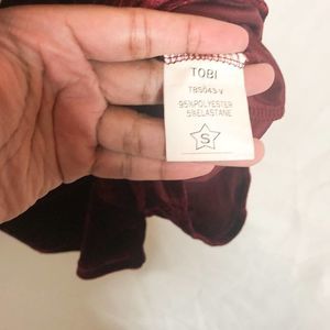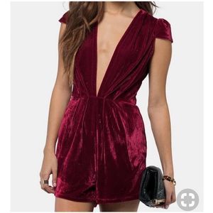romper, tobi, boutique, red, maroon, burgundy, velvet, vneck, small, winter, holidays, valentinesday, datenight, casual, fall, spring