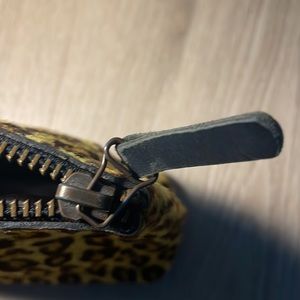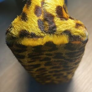 Soffer Ari Mini Animal Fur Real Cheetah has a little bit of fur missing on corners of this bag does not take away on how beautiful it is only damage is the lining in the inside of this bag is loose but can be re attached or taken out and have the leather come through very elegant piece definitely a conversation piece