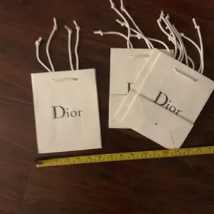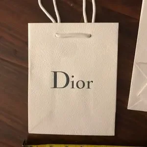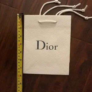 Like new, authentic, Dior small shopping bag (ONE paper shopping bag), perfect for Dior jewelry or cosmetics gifts. See pictures for size, dimensions. I frequent the Dior shops in Paris and NY multiple times a year for trinkets or gifts. The Dior bag has stayed the same; forever simple and classic.