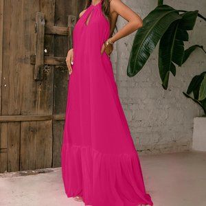 Hot Pink Boho Womens Tie Backless Halter Dress