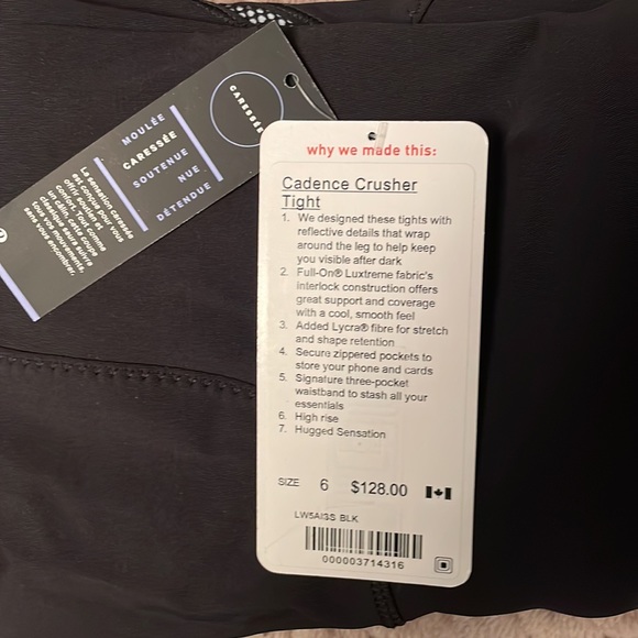 Super cool NWT Lulu CADENCE CRUSHER Tight in black. I bought these and never wore them. I’ve decided I don’t do leggings lol