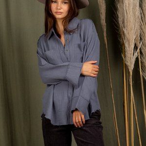 NWT Frayed Hem Detail Woven Shirt Top