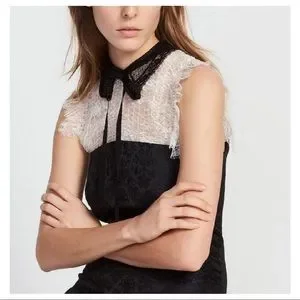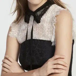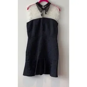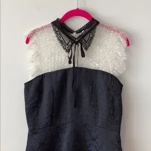 Pretty Flavia Sleeveless Dress - Black with white lace top and a pretty black lace collar.