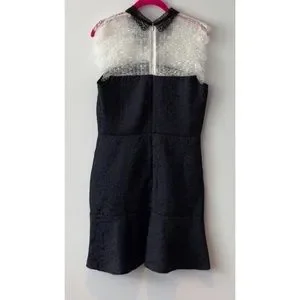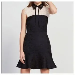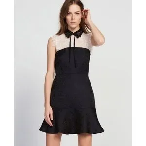 Sandro Flavia Dress Black White Eyelash Lace Flare Brocade