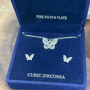 NWT Cubic zirconia silver butterfly earrings necklace and mom butterfly necklace