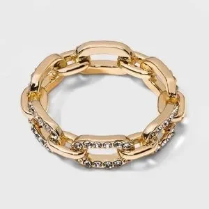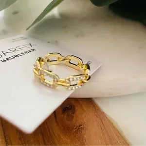 Sugarfix by BaubleBar Chain ring Crystal pave accents Gold tone Size: 7 New With Tags