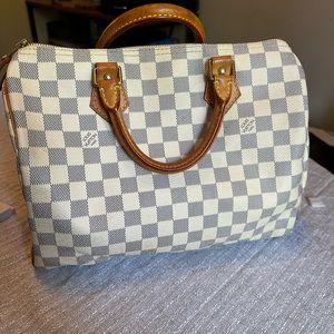 Louis Vuitton LV Hand Bag Speedy 30 White Damier Azur Purse