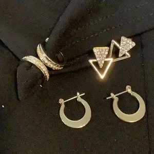 Cute costume jeweled earrings made to look like the real thing. Small but elegant. Worn perhaps once or twice. Selling 3 pairs together.