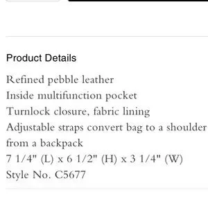 NWT Coach Convertible Mini Backpack, pebble leather, shoulder back or backpack