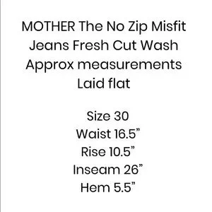 Size 27 Approximate measurements when laid flat