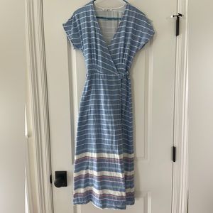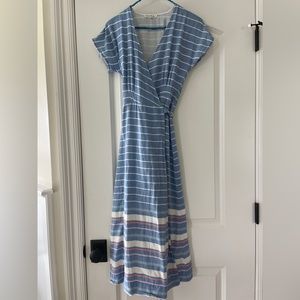 Marine Layer Maddie wrap dress midi blue white striped belt size XS NWOT