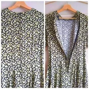 90s Style Grunge Daisy Print Hi Low Hem Skater Dress with Pockets-Size 6