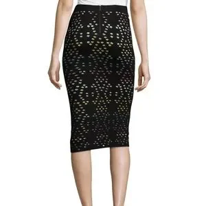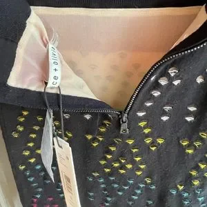 NWT Alice + Olivia designer skirt. Stretchy, Form fitting, bodycon design that’s very flattering. Black knit fabric with laser cut multicolor design all over. Back zipper with hook closure. Straight, high waist Pencil style that is very tight and very stretchy.