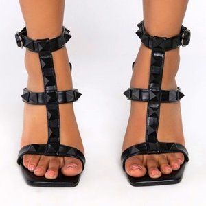 Stasia Black Rockstar: Studded Ankle Strap Chunky Heel Sandal 7 7.5 8.5 9