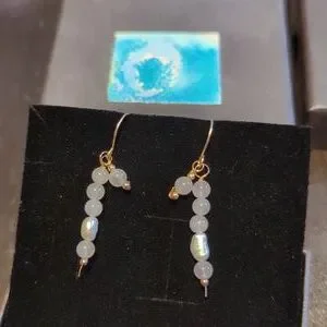 Pretty, dainty rose quartz & natural pearl earrings, 14k rolled gold, in giftbox