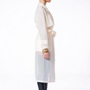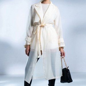Callie Long Chiffon: Sheer Mesh Sash Trench Duster Jacket M L