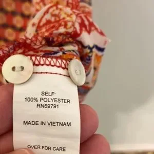 Orange, purple, blue, and yellow in a geometric pattern. Single pleated in the front.