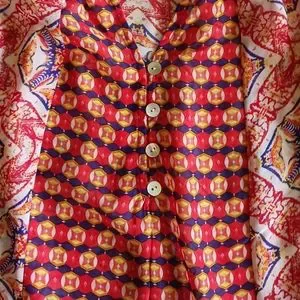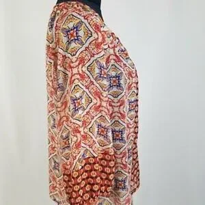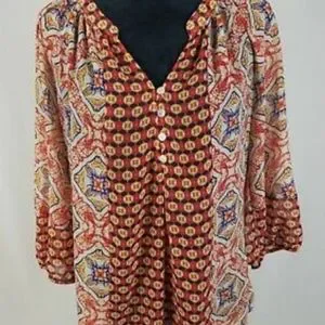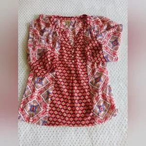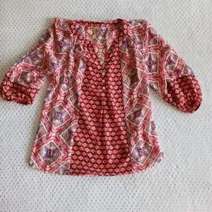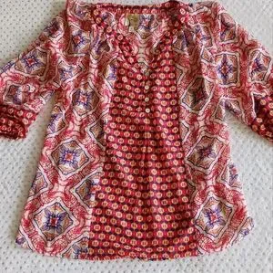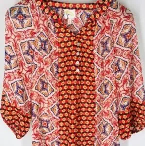 Fig and Flower Anthropologie Blouse Top Size Small Geometric Button V Neck