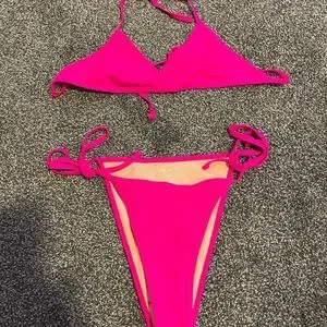 pacsun pink cross front triangle bikini top size small high waist bottoms size XS no flaws
