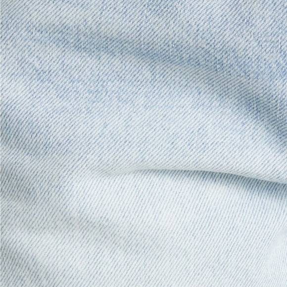 Meant to be worn low on the waist, these casual shorts get vintage vibes from raw hems and nonstretch denim in a bleached-out light wash.