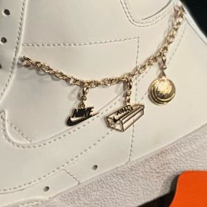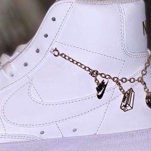 White Nike Blazers with Gold charms, size 10, new in box never worn
