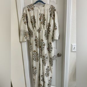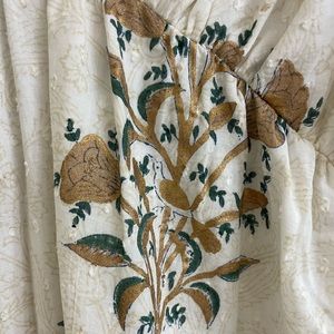 BNWT Logan caftan in XL. A creamy background appointed with a beautiful gold and green medallion motif will set you apart from everyone else. This lightweight fabric allows you to be comfy and look stylish. A perfect dress for a casual brunch or dress it up for some glam.