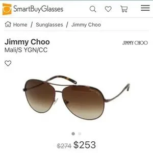 โJIMMY CHOOโ Aviator sunglasses with hard case and eyewear cleaning cloth!